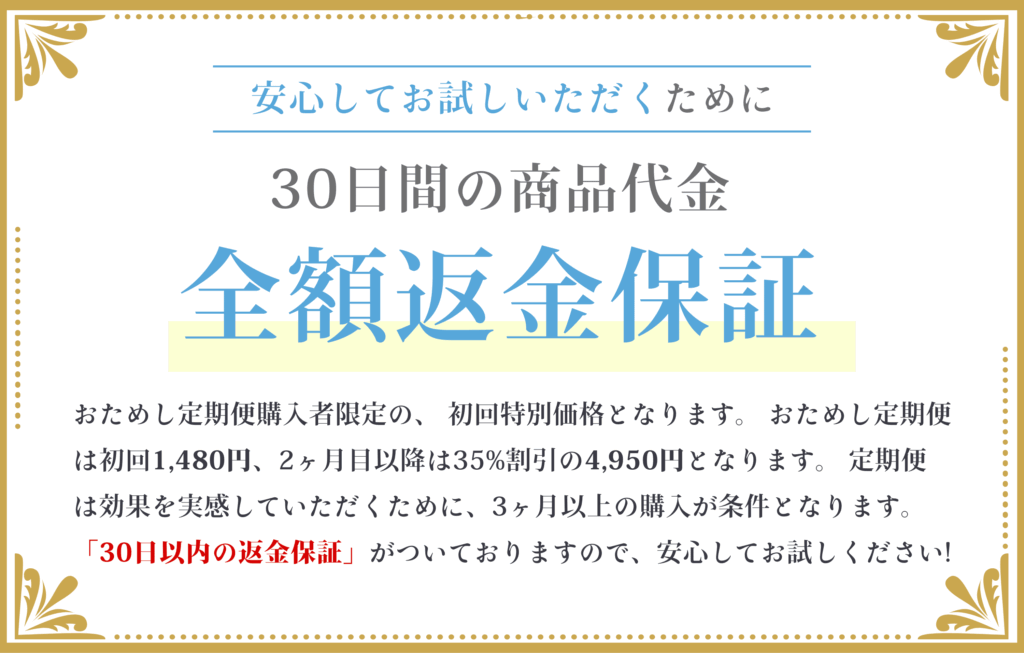 返金保証があるおかげで、まずは1ヶ月だけでも試すハードルが低くなります。公式サイトでも、継続使用によって効果を感じやすいと紹介されているので、「まずは1ヶ月だけ試してみよう」と思えるのは、40代女性にとって大きな魅力です。